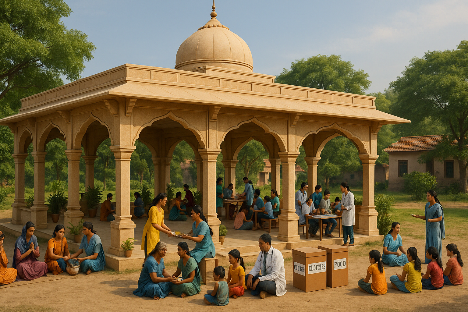 In many villages and towns, there are no dedicated spaces where people can gather to donate, worship, or engage in community welfare activities. Our vision is to create multi-purpose pavilions that support religious activities, host medical and food distribution camps, promote educational workshops, and serve as donation centers for clothing, books, or food.